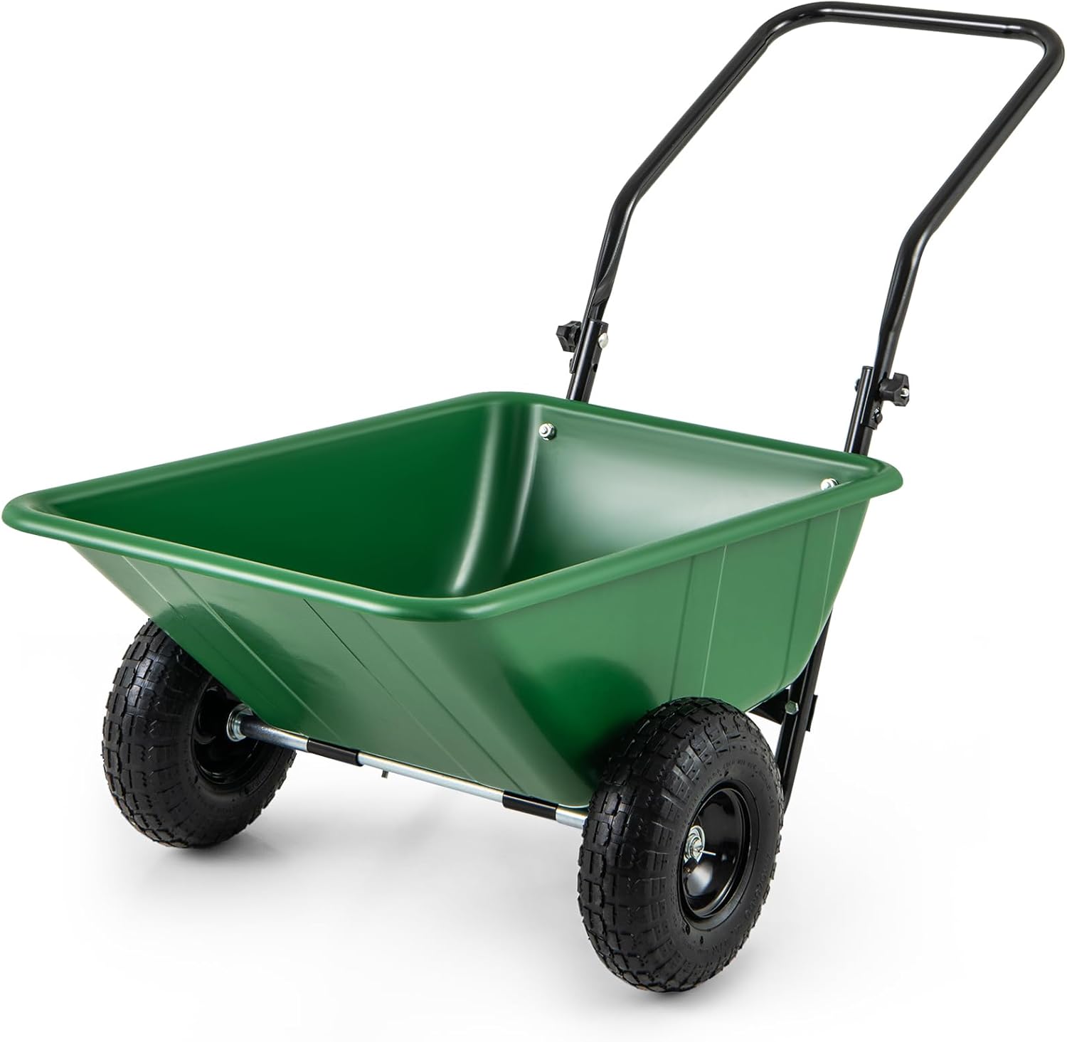 • Dual-Wheel Wheelbarrow, Heavy-Duty Garden Utility Cart w/Pneumatic Tires, 330LBS Capacity