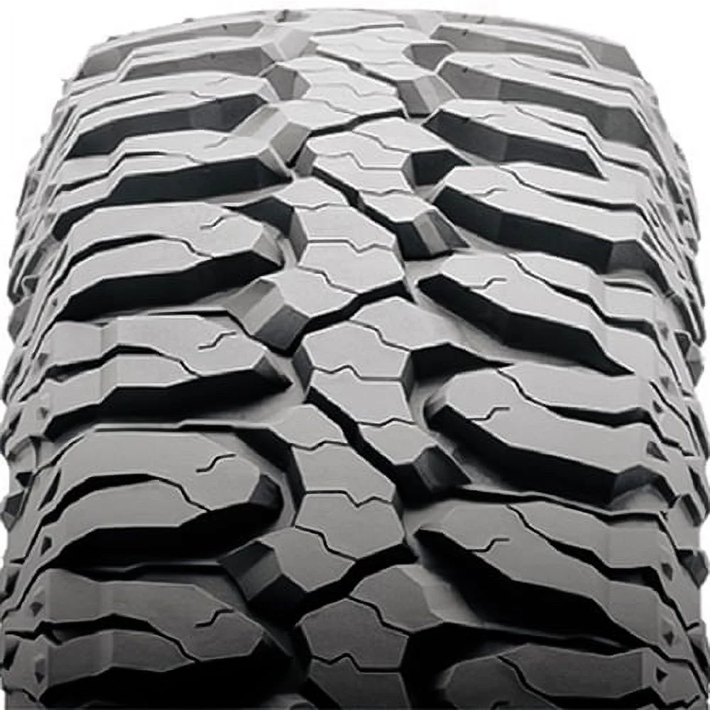 3-ply sidewall provides added strength and impact protection Stone ejectors protect against stone retention and drilling for a longer tread life High void tread promotes self-cleaning capabilities to quickly expel mud and debris for consistent traction Angled biting edges and complex siping enhances traction and performance on both on- and off-road terrains Elaborate siping and enhanced tread design allows for superior water dispersion to reduce the risk of hydroplaning Aggressive design and large voids to effectively navigate rough conditions Cut and chip resistant rubber compound is formulated to withstand abuse from rocks and gravel in rough conditions .